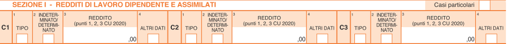 Righi da C1 a C3 - redditi di lavoro dipendente e assimilati |